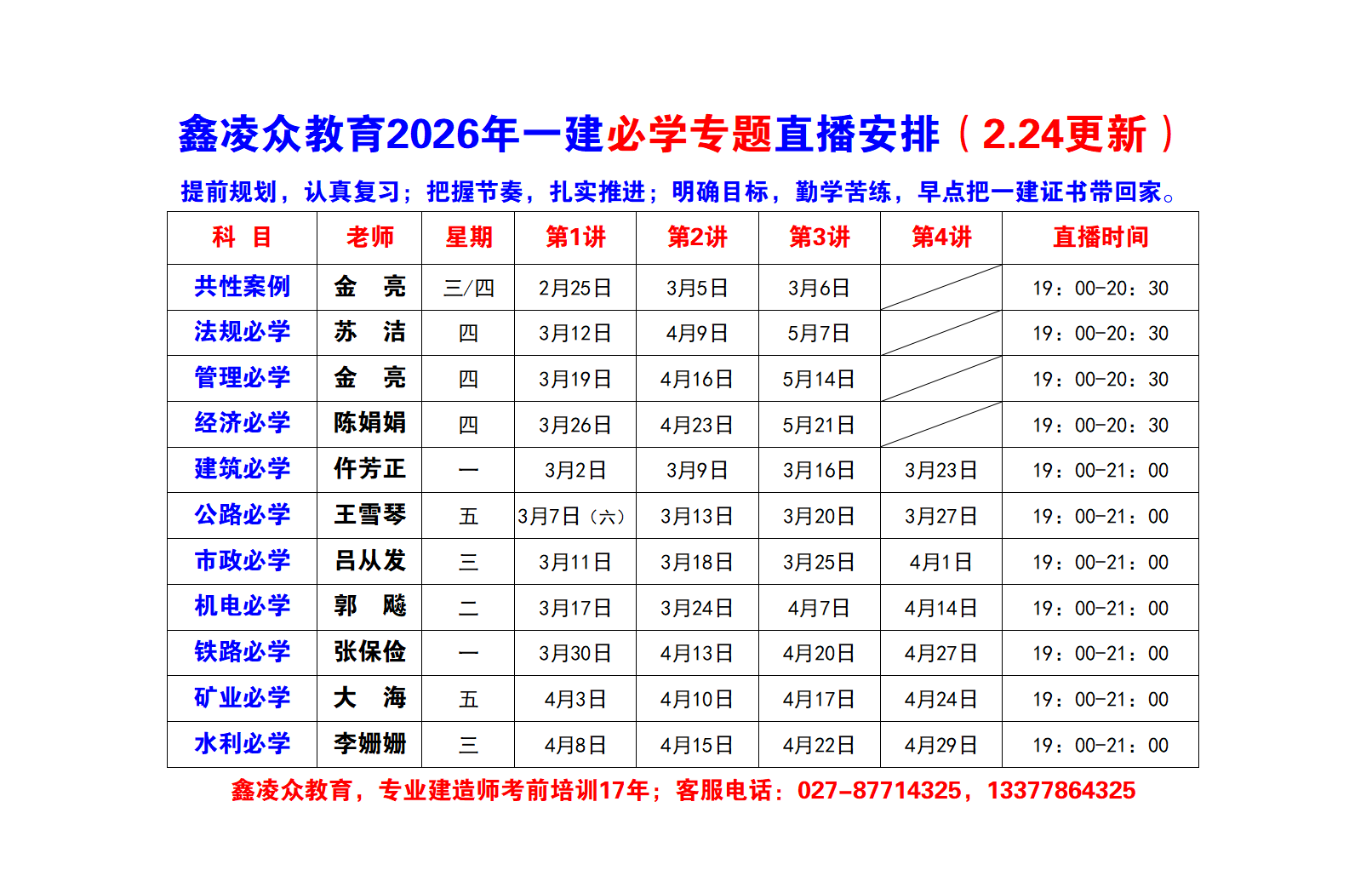 2026年一建必学专题直播日程